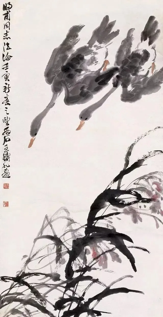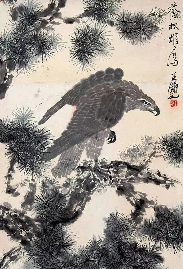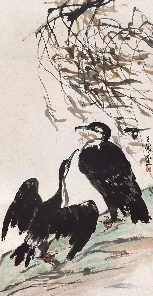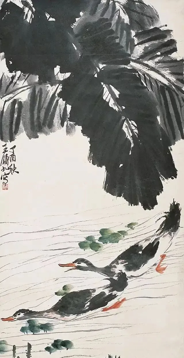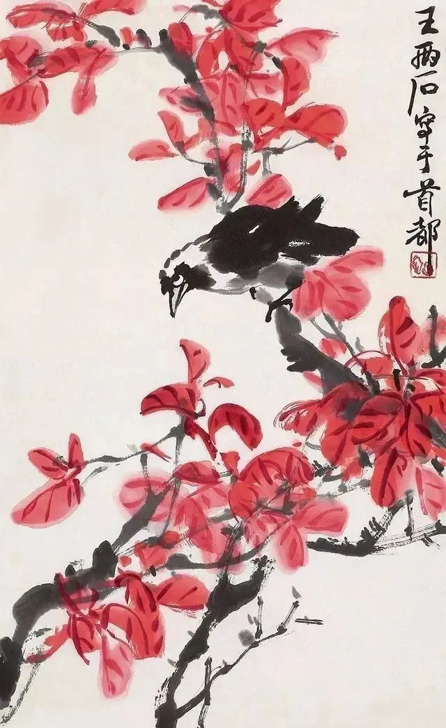 王铸九这老先生的花鸟画,看着就带劲!他师承齐白石,但笔下那股子刚劲,比老师还“野”——像大刀阔斧砍出来的,墨色浓得像黑铁,线条硬得能当钢筋使,可细看又藏着篆刻的刀味,刚中带柔,绵里藏针。