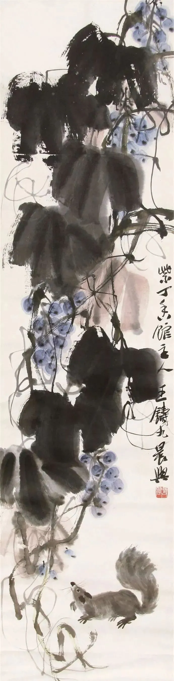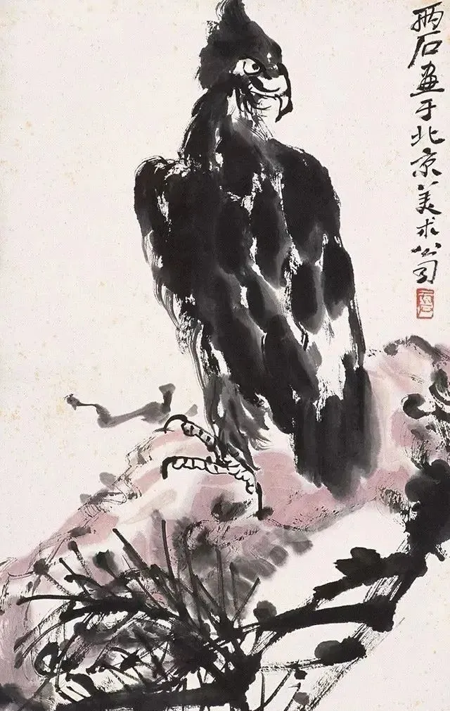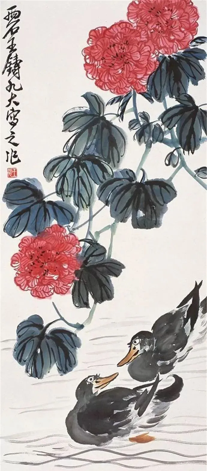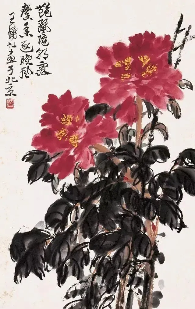 王铸九这老先生的花鸟画,看着就带劲!他师承齐白石,但笔下那股子刚劲,比老师还“野”——像大刀阔斧砍出来的,墨色浓得像黑铁,线条硬得能当钢筋使,可细看又藏着篆刻的刀味,刚中带柔,绵里藏针。